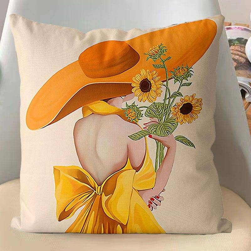 现代向日葵姑娘十字绣抱枕2023新款客厅卧室手工治愈系自己绣小件