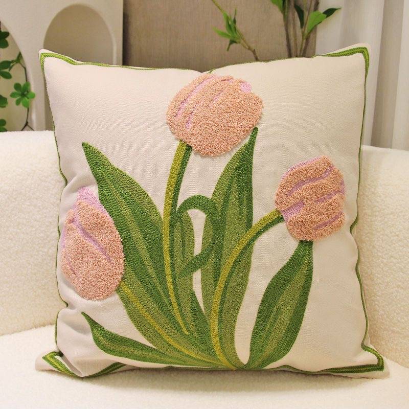 爆款新款郁金香刺绣抱枕套不含芯客厅沙发高档抱枕新款45*45绣花