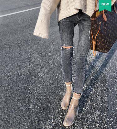 九分牛仔裤女2018秋装新款韩版修身破洞chic毛边铅笔裤小脚裤