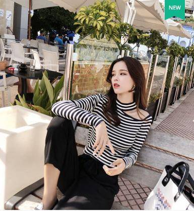毛针织衫女2018秋装新款韩范条纹打底衫长袖短款针织上衣女秋冬潮