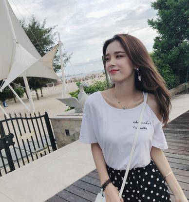 短袖T恤女2018夏装新款韩版宽松心机露肩设计感体恤上衣夏季