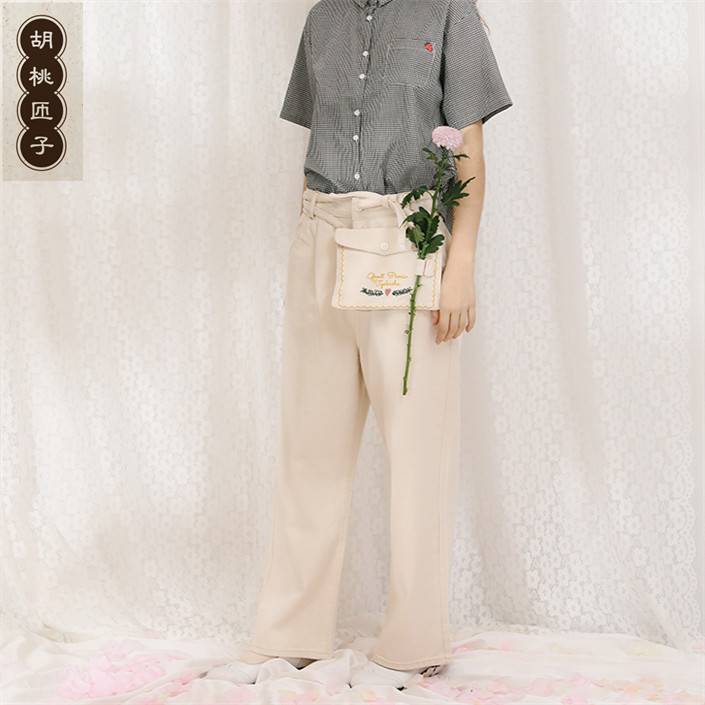 胡桃匝子野餐系列女款米白色挎包直筒牛仔裤