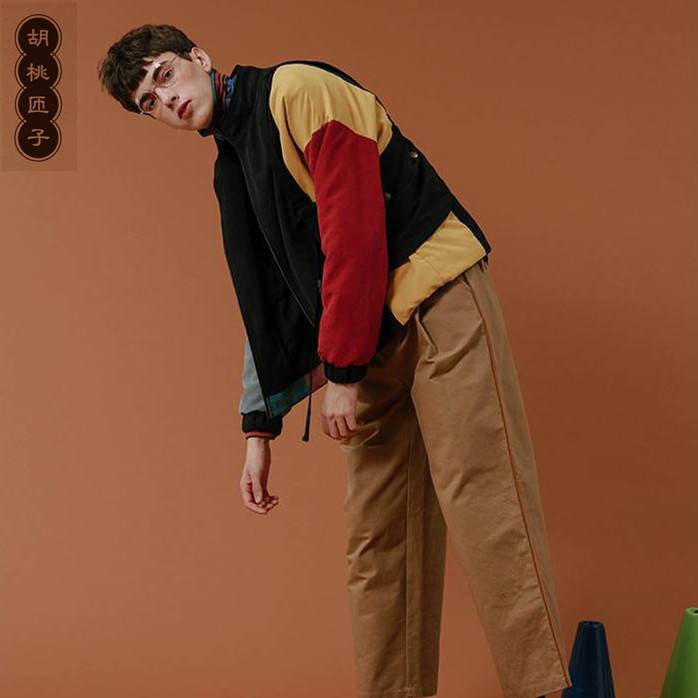 胡桃匝子加油系列男款褐色直筒休闲裤