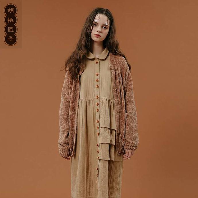 胡桃匝子加油系列女款姜黄色绒感毛衣开衫