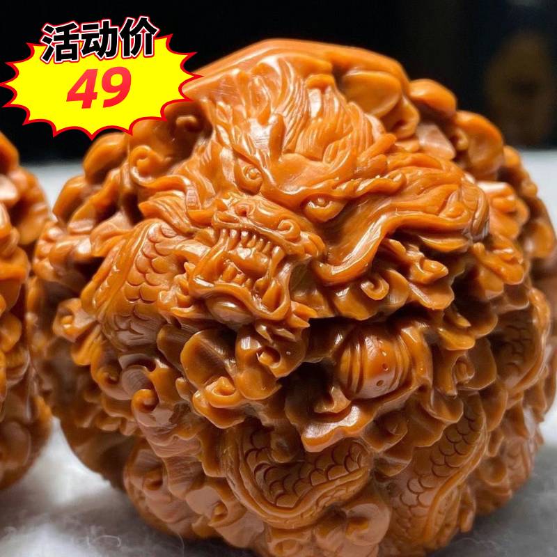 2025天然核桃王勇官帽雕刻龙腾四海 ,神龙摆尾,文玩核桃47左右