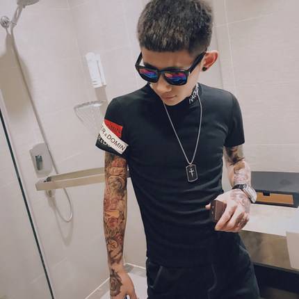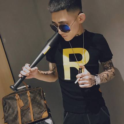 2019夏季潮牌男装T恤社会精神小伙短袖快手网红圆领半截袖体恤潮