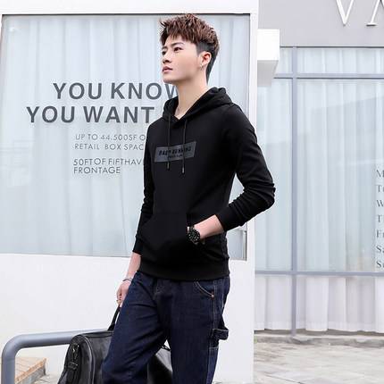 春秋季卫衣男连帽潮流加绒帽衫男士外套运动套头衫韩版纯色学生