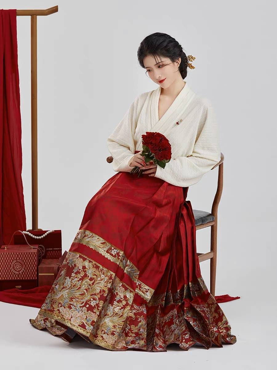 西西洛原创明制汉服[缔结]改良飞机袖新中式红色马面裙女日常套装
