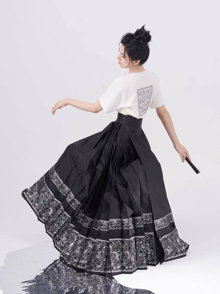 马羽西西洛原创明制汉服马面半身裙搭t恤女短袖立领复古国风