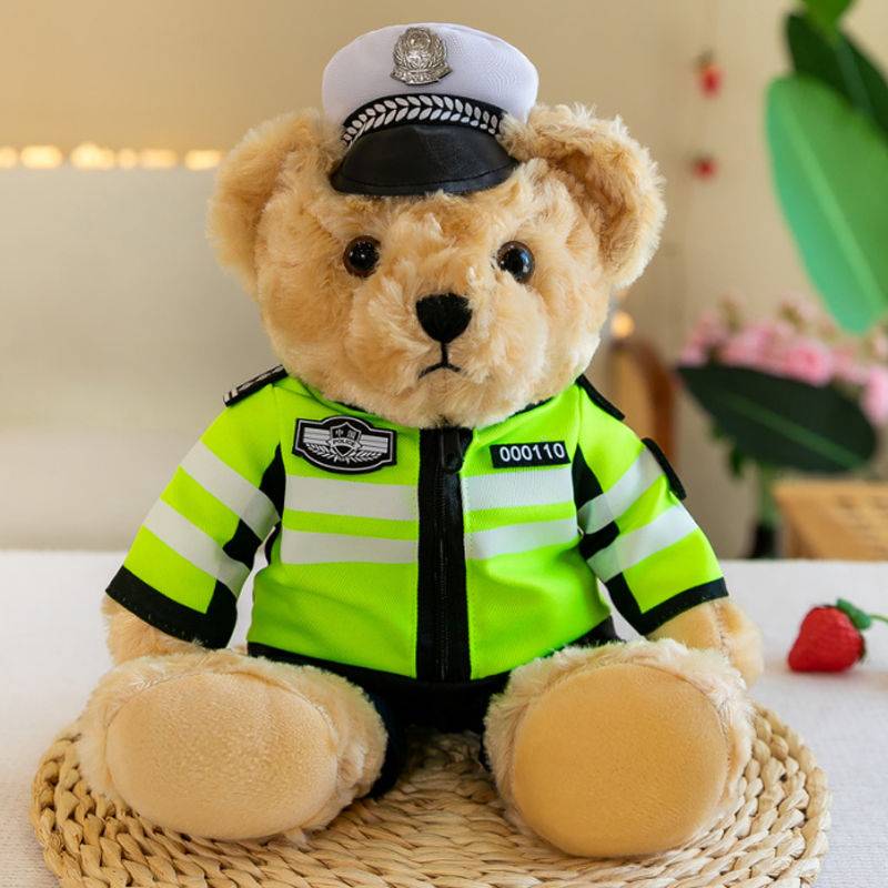 交警小熊泰迪熊警察小熊公仔玩偶铁骑机车熊骑行服可爱毛绒玩具