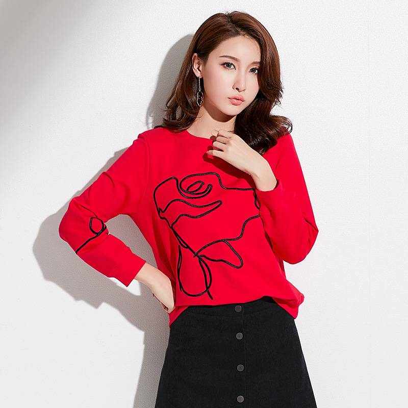 2018秋季新款韩版女装休闲面上衣女圆领刺绣花朵宽松