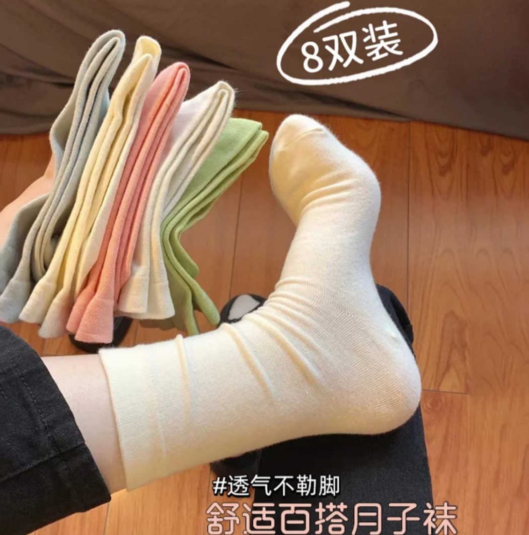 8双女袜子秋款堆堆袜ins纯色多巴胺中筒月子袜c