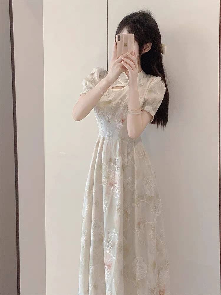 新中式改良旗袍年轻款2023新款女装高级感碎花连衣裙女夏季