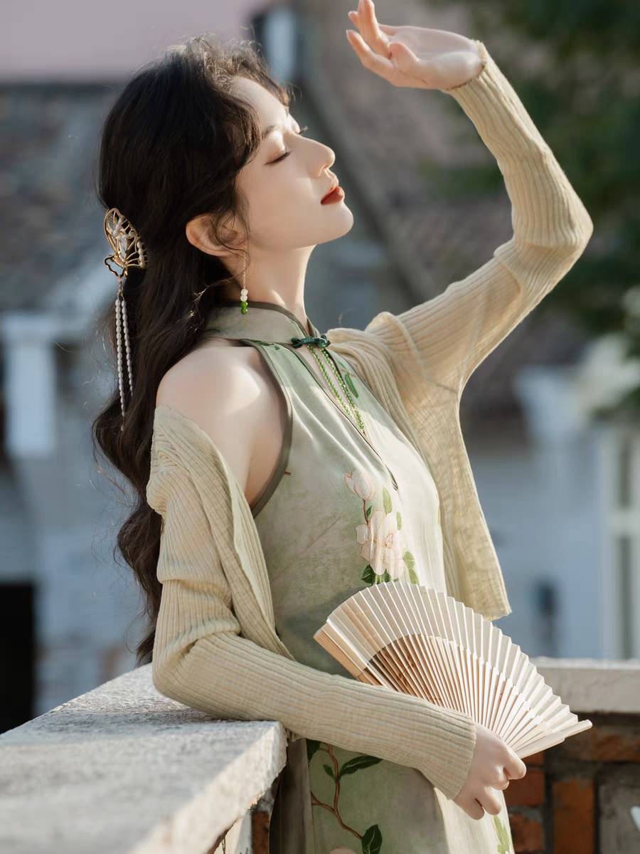 改良旗袍外搭开衫年轻款春夏新中式女装国风套装复古高级感连衣裙