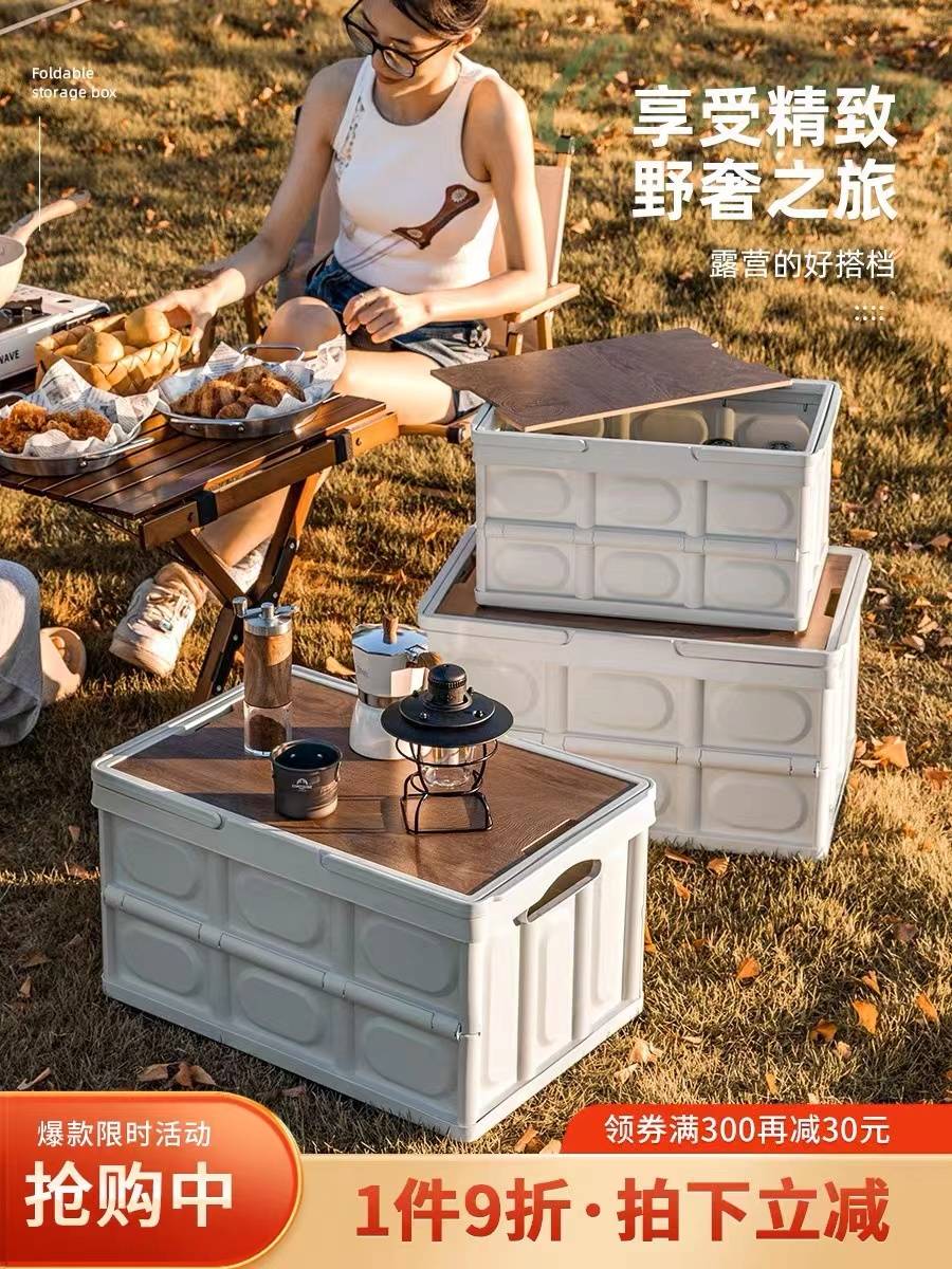 今下露营租赁收纳箱折叠箱木盖置物箱车载后备箱储物箱野餐整理箱