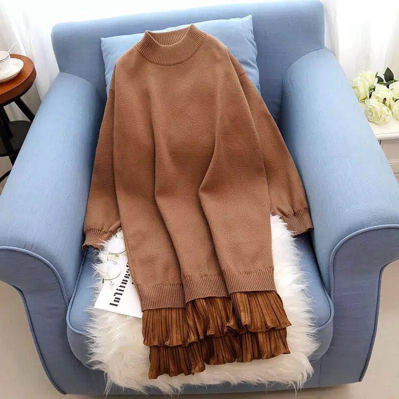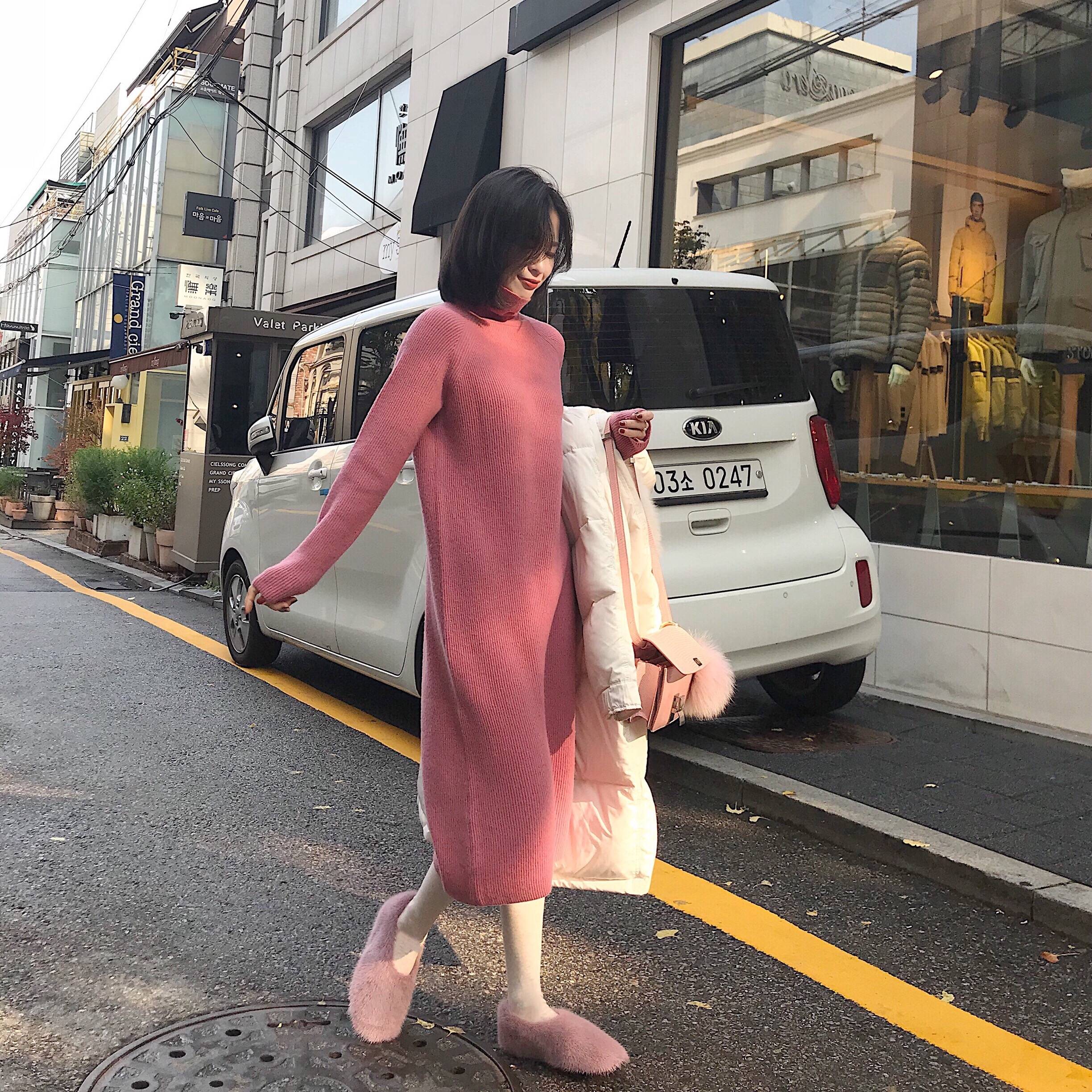 南瓜谷针织连衣裙过膝中长款女秋冬2018新款羊毛打底衫毛衣女Z265