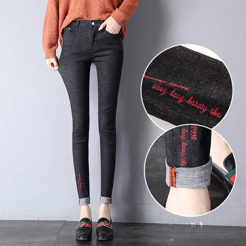 2018春季新款女装牛仔裤韩版休闲时尚中腰刺绣铅笔小脚裤