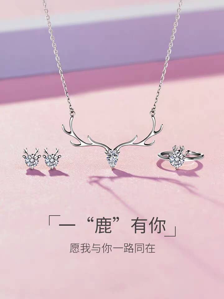 项链女纯银一鹿有你一路鹿角麋鹿锁骨银ins简约气质潮网红小众925