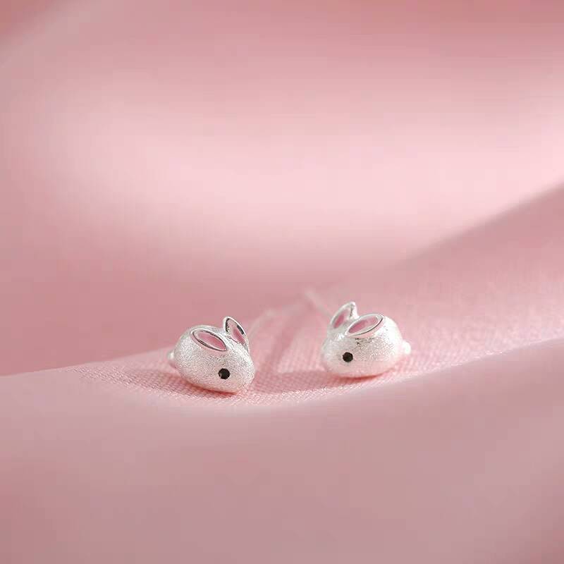 925纯银小白兔耳钉女韩版小清新少女心可爱动物耳饰 睡觉免摘