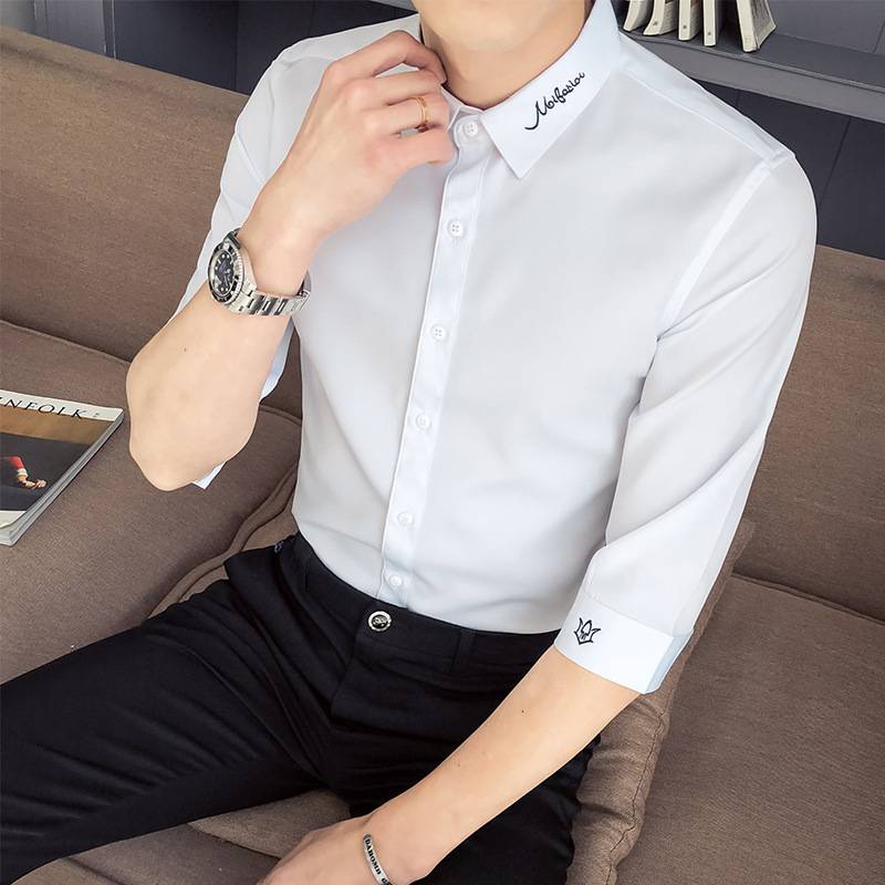 2021新款痞帅衬衫韩版休闲白衬衣潮夏季薄款高级感中袖寸