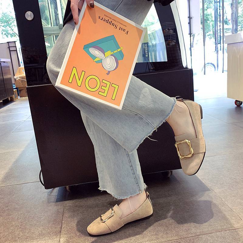 单鞋女2019春季新款百搭浅口一脚蹬懒人鞋平底孕妇女鞋韩版豆豆鞋