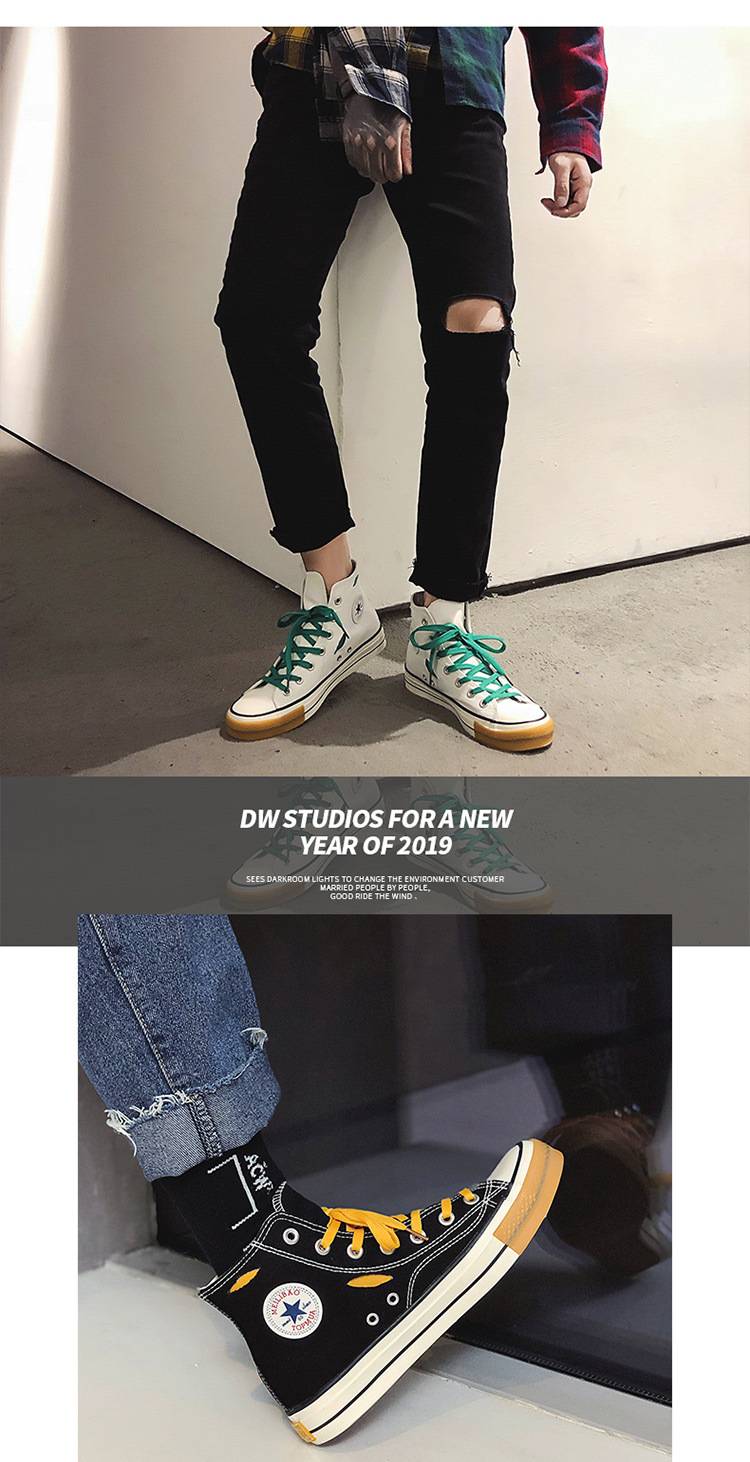 2019春季新款港风破洞高帮帆布鞋