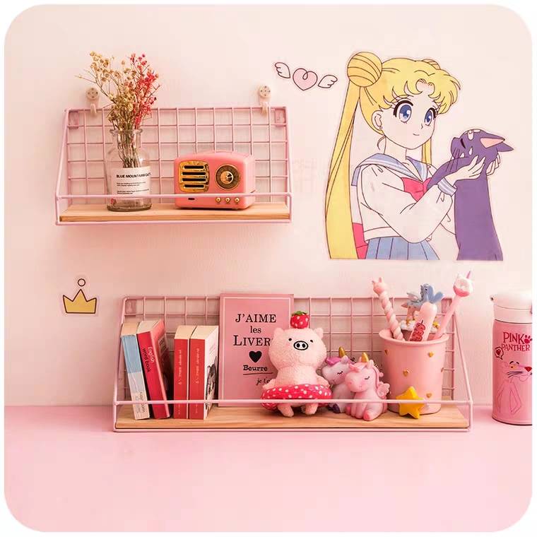 网红墙上铁艺置物架少女心ins风创意挂篮收纳