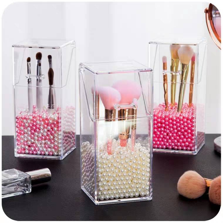 透明化妆刷收纳筒带盖便携防尘放化妆刷的收纳桶刷子收纳盒刷具