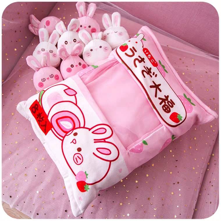 ins网红一大袋子小公仔小兔子抱枕抖音少女心爆棚的娃娃床上公主