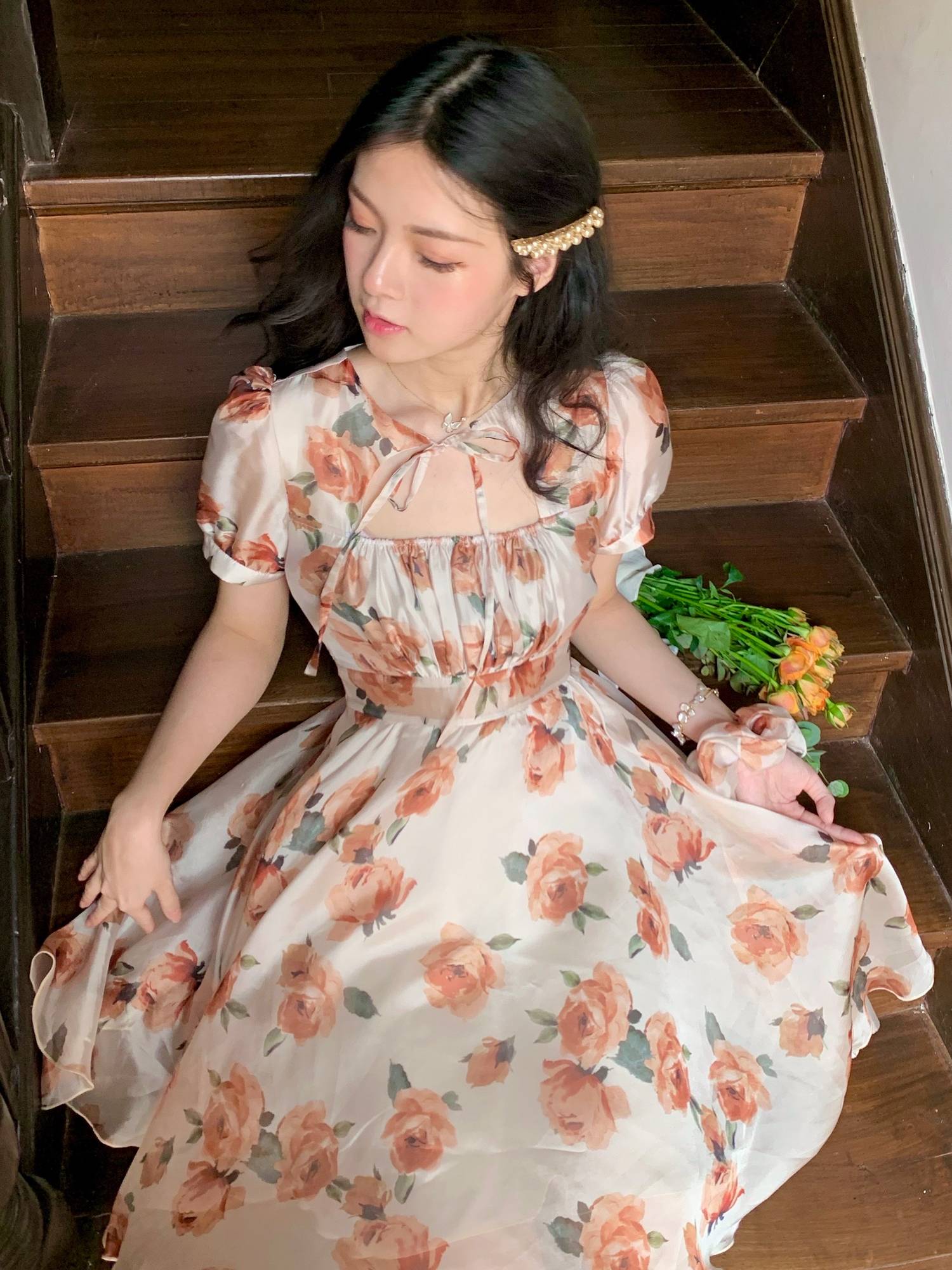 夏新款雪纺长裙设计感小众初恋裙复古温柔碎花裙