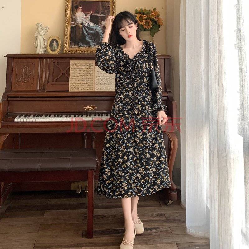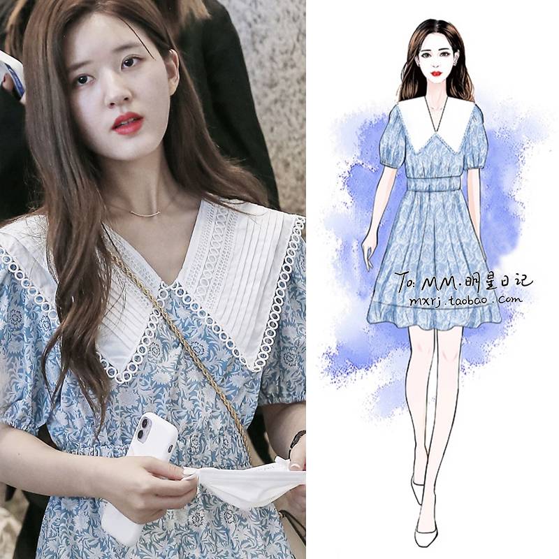 赵露思同款娃娃领碎花连衣裙女