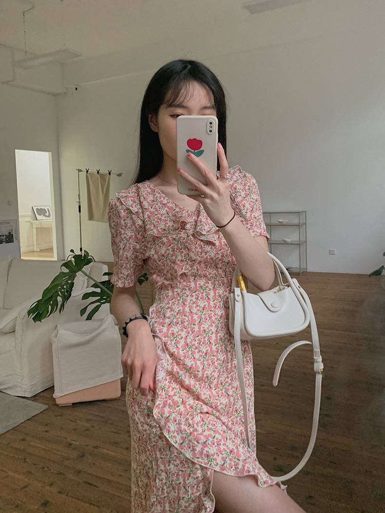 夏装新款小香风碎花温柔法式小众连衣裙女