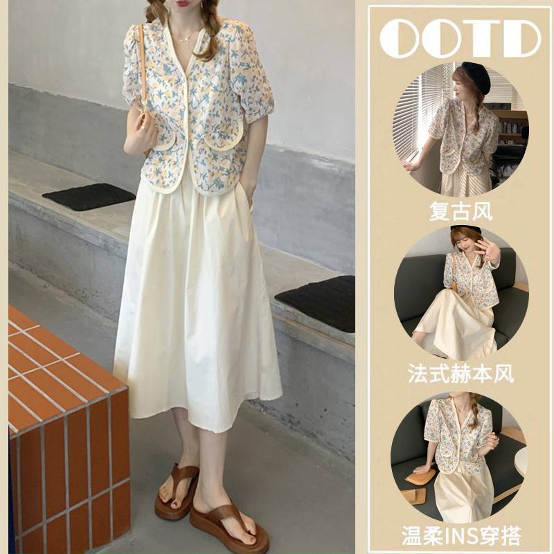 春夏季连衣裙复古清新高级感长裙女显瘦显高泡泡袖碎花大码