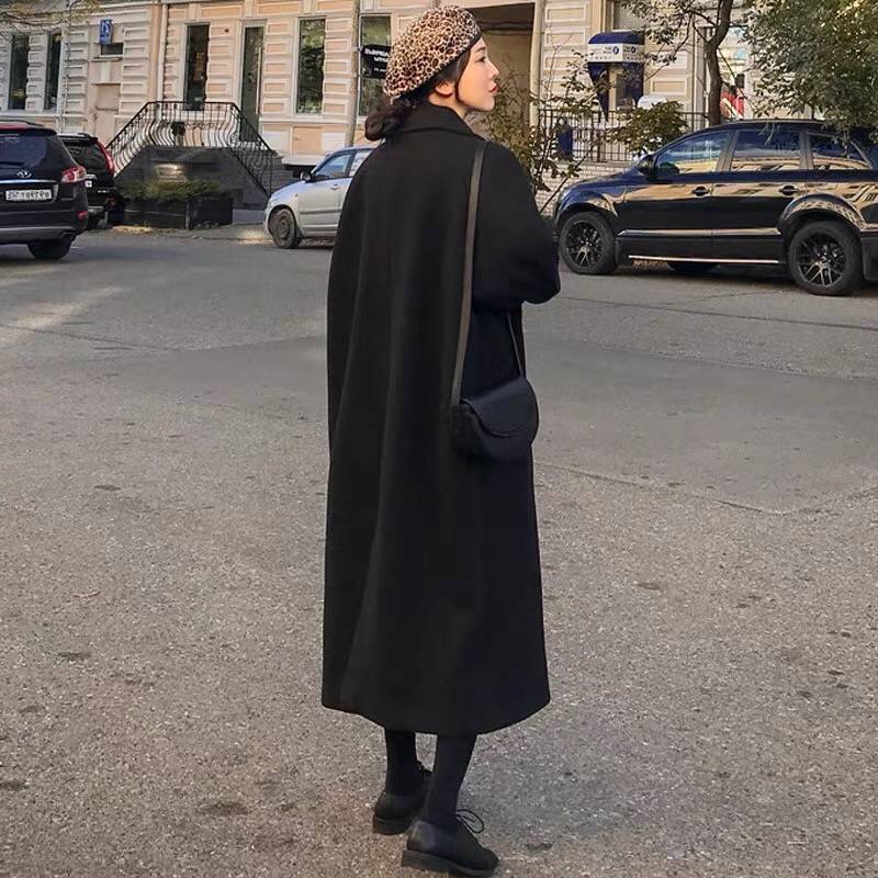 黑色毛呢外套女中长款2021年秋冬新款韩版赫本风