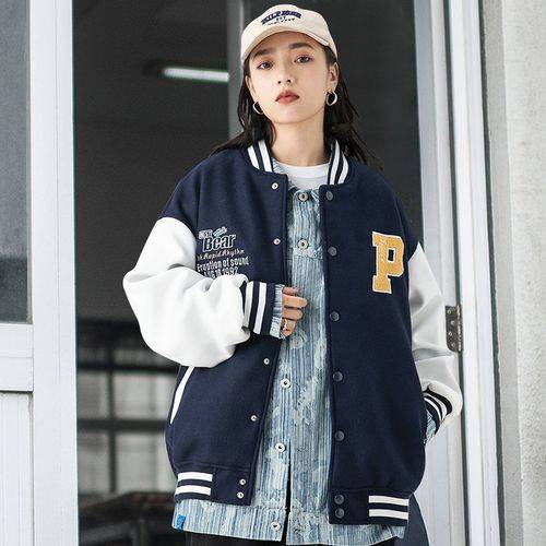 女装秋冬季情侣棒球服外套女韩版宽松百搭撞色加棉夹克上衣