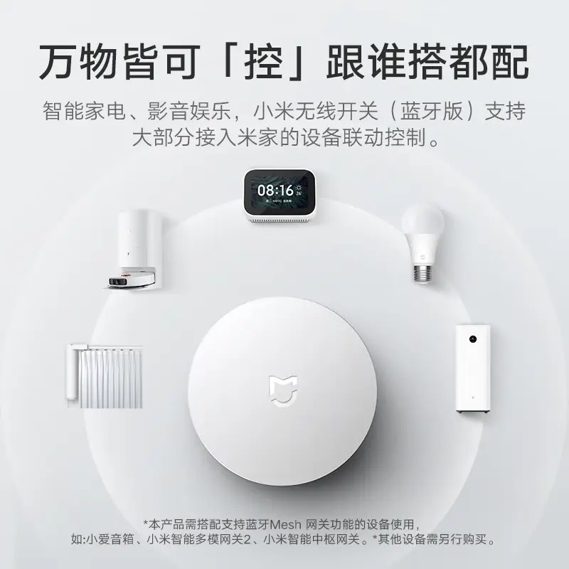 小米无线开关蓝牙版 智能无线开关按钮 可贴可放免布线 一物 三用 智能生态联动快速响应