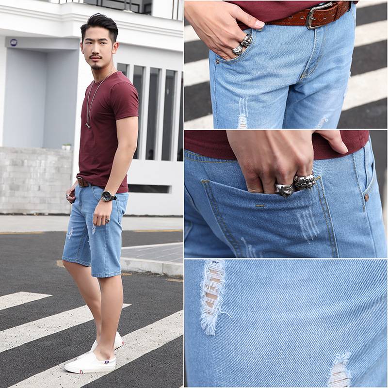 2018夏季新款韩版牛仔裤男式修身破洞纯棉五分休闲裤男士短裤薄款