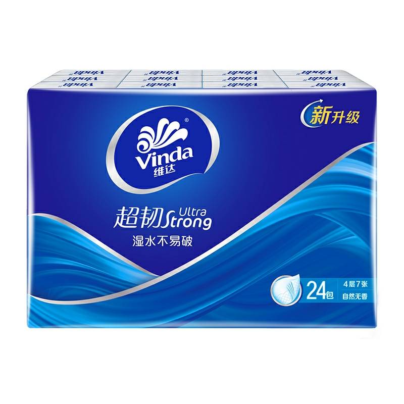 维达手帕纸湿水不易破4层7张自然无香餐巾纸