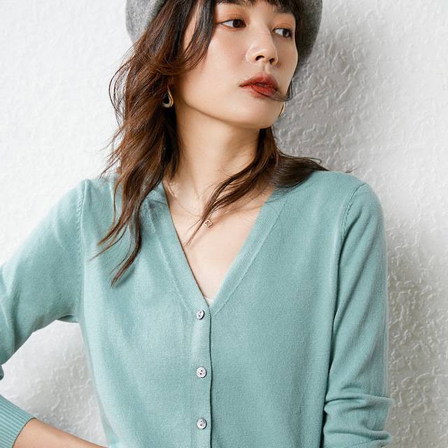 女装秋季新款韩版V领针织衫外套百搭长袖弹力绒开衫毛衣