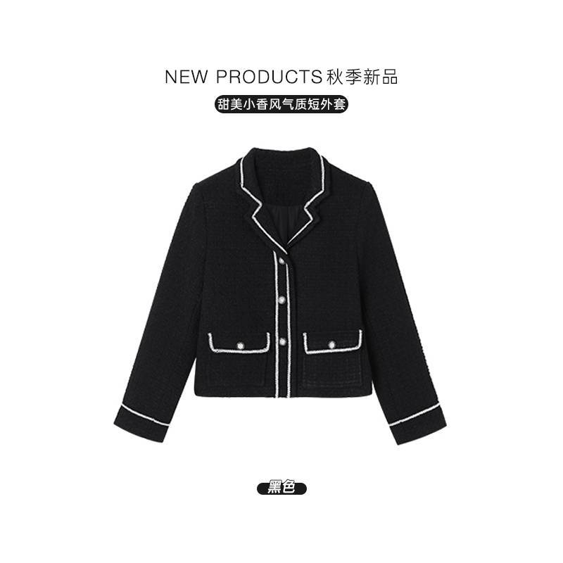 秋新款重工设计口袋短外套女气质黑白撞色宽松翻领上衣