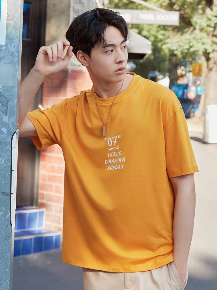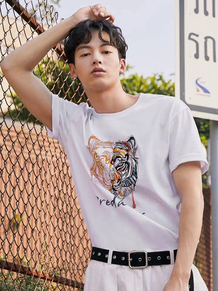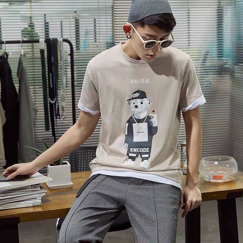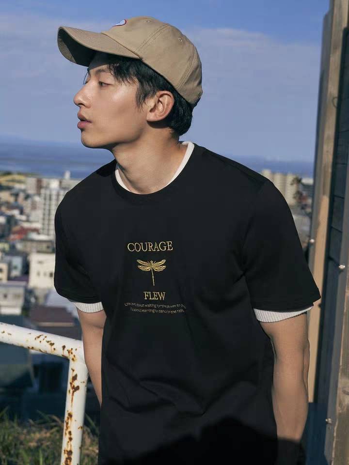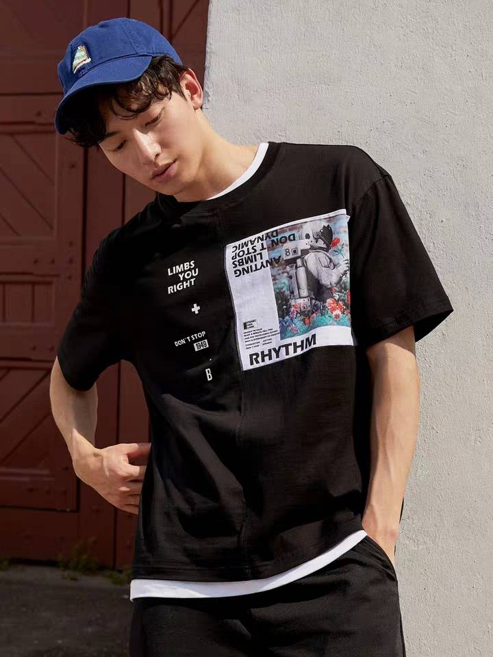 男装短袖2019夏季新款黑色印花打底衫潮流