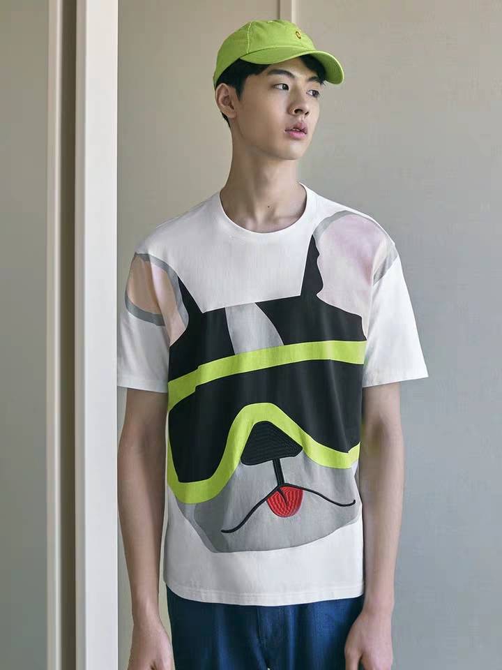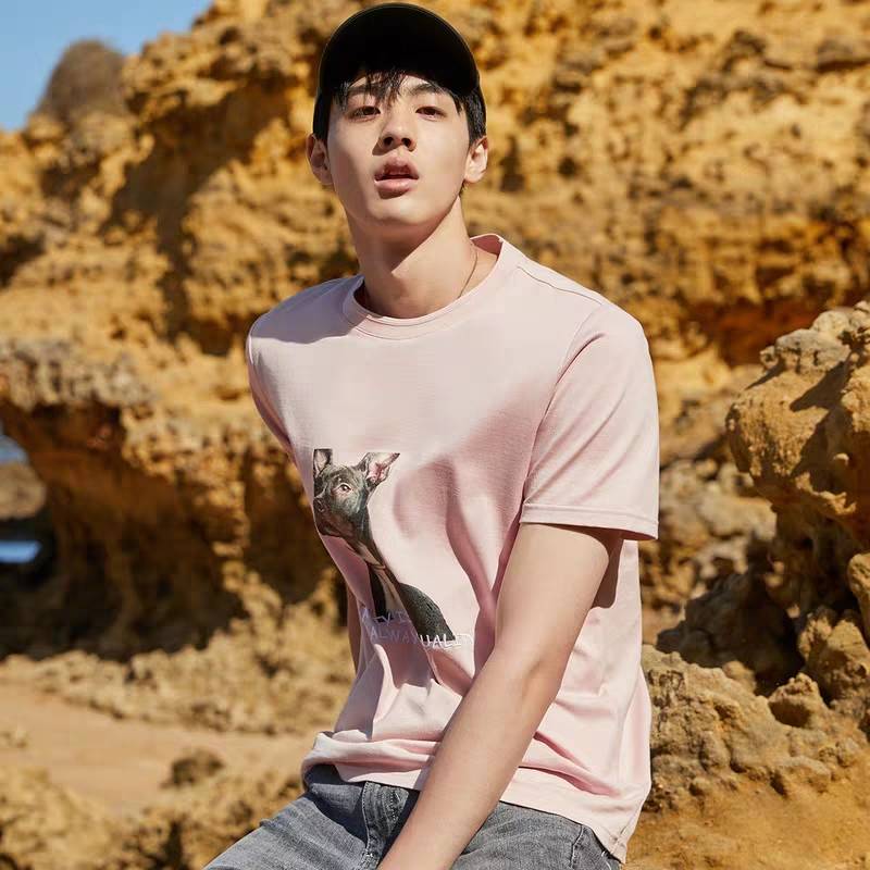 2019夏季新款短袖T恤男纯棉印花圆领粉色潮牌男士潮流T恤