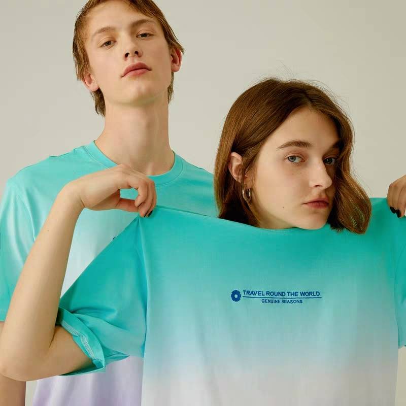 2019夏季新款湖绿色渐变潮牌潮流T恤