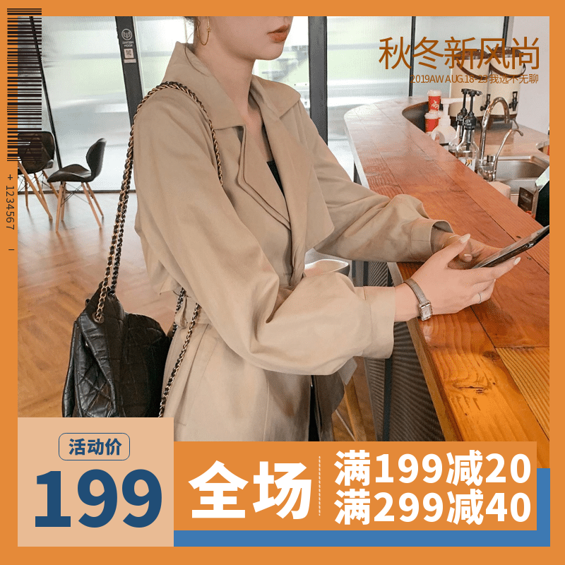 2019秋装新款高端女装外套欧美大牌时尚大气双排扣风衣女中长款