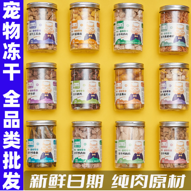 冻干批发鸡肉粒冻干多春鱼蛋黄三文鱼鹌鹑鸭肉粒现货批发宠物冻干