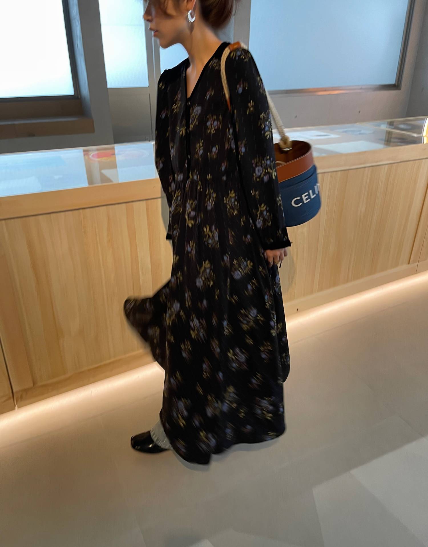 3ts 韩剧女主角 法式复古碎花连衣裙收腰气质早秋中长款裙子女