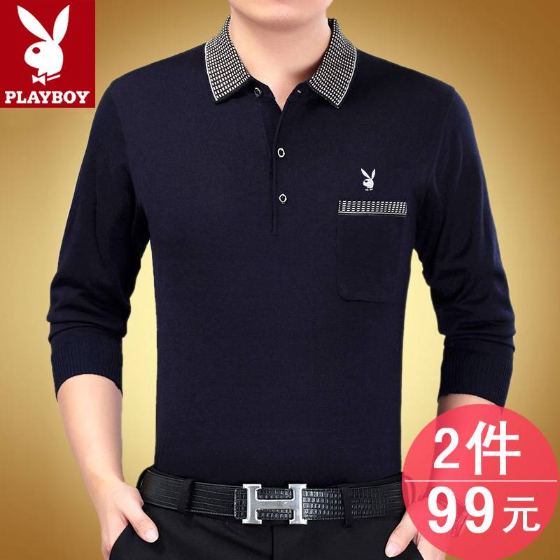 秋季中年男士长袖T恤纯棉翻领中老年人男装父亲大码打底衫爸爸装