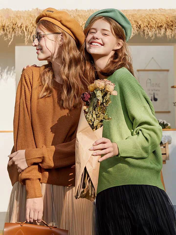 慵懒风针织衫女新款韩版宽松打底圆脸针织