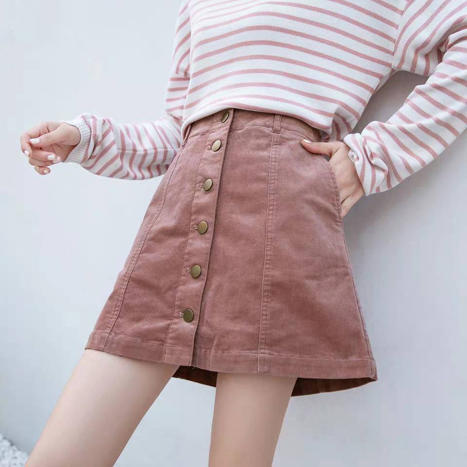 灯芯绒短裙修身显瘦复古a字裙