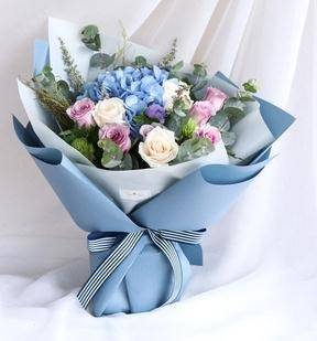 宁波鲜花店同城速递韩式花束玫瑰花绣球礼盒花订花生日求婚向日葵